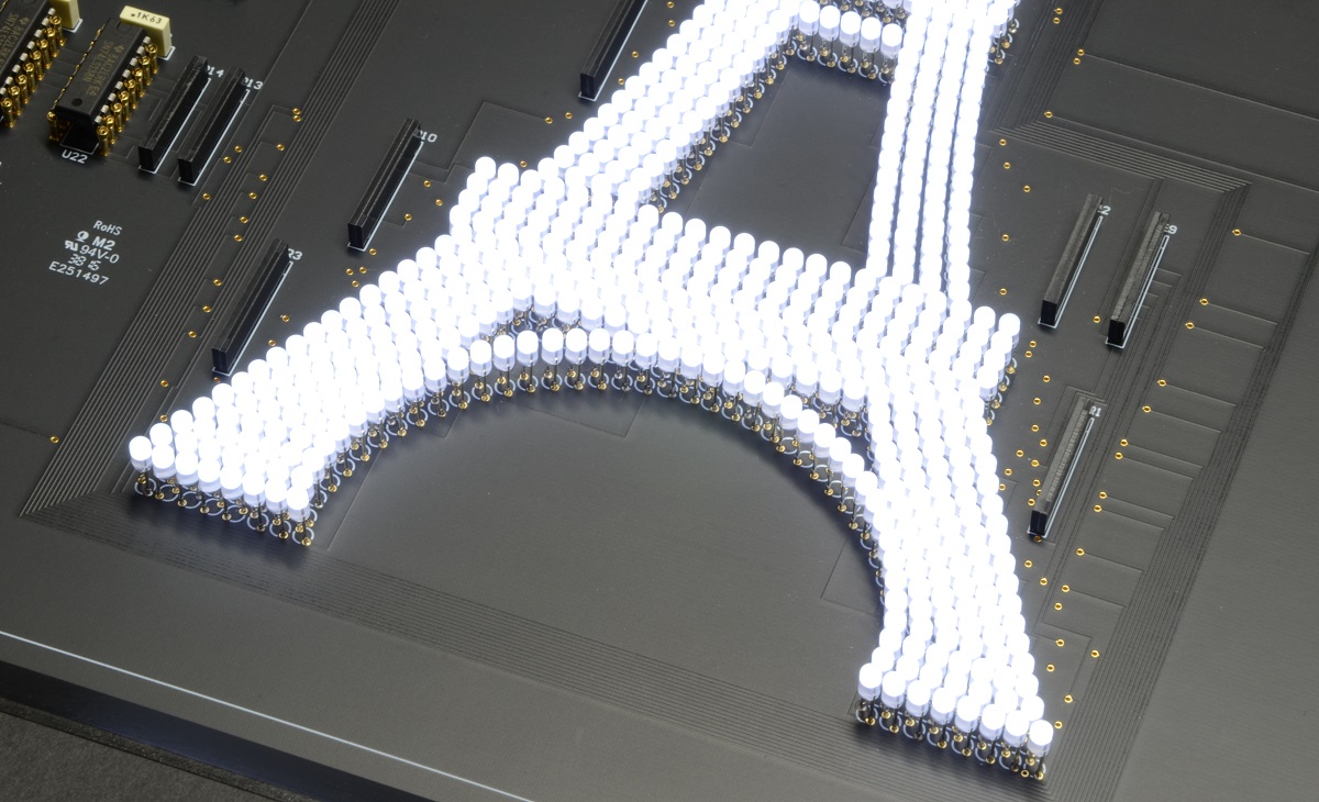 More than 20 different renderings of the Eiffel Tower, with sparkling, progressive and random illuminations, arbitrary sequenced every minute.